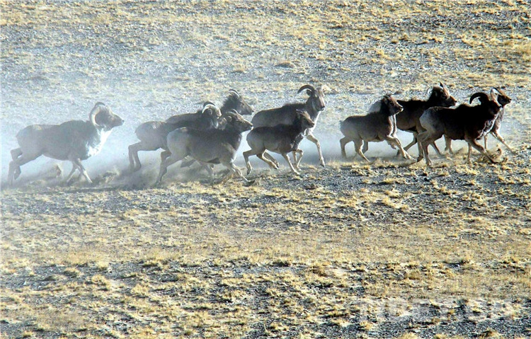 圖為奔跑在羌塘國家級自然保護(hù)區(qū)的國家二級保護(hù)動(dòng)物盤羊(2006年) 攝影:唐召明