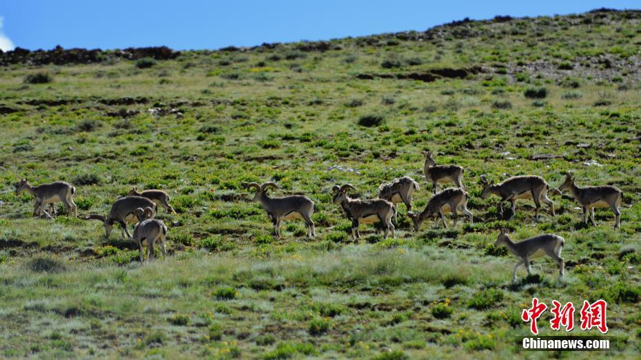 9月2日,多只藏原羚和巖羊在西藏山南羊卓雍錯湖畔覓食。當地近年來不斷加大保護力度,環境日益趨好,野生動物種群正在逐漸恢復、增長。中新社記者 江飛波 攝