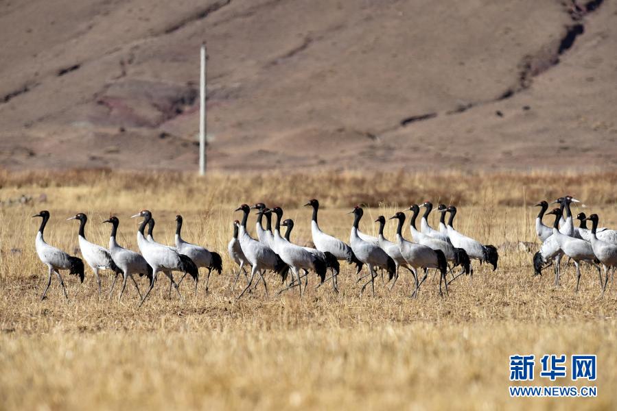 這是12月12日在林周縣黑頸鶴自然保護區卡孜鄉拍攝的黑頸鶴。新華社記者 黃豁 攝