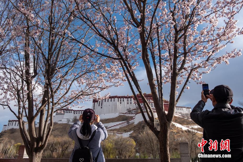 入春以來,隨著氣溫逐漸升高,海拔3650米的高原城市拉薩春色宜人。街道、公園等地的桃樹、李花、杏花等已經綻放,呈現出一幅“無處不飛花、東風御柳斜”的美麗景象。在布達拉宮廣場、宗角祿康公園等地,轉經、鍛煉的市民,以及拍照留念的游客們怡然自樂。江飛波 攝