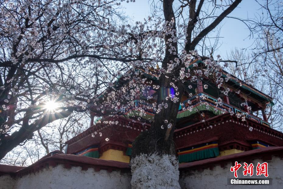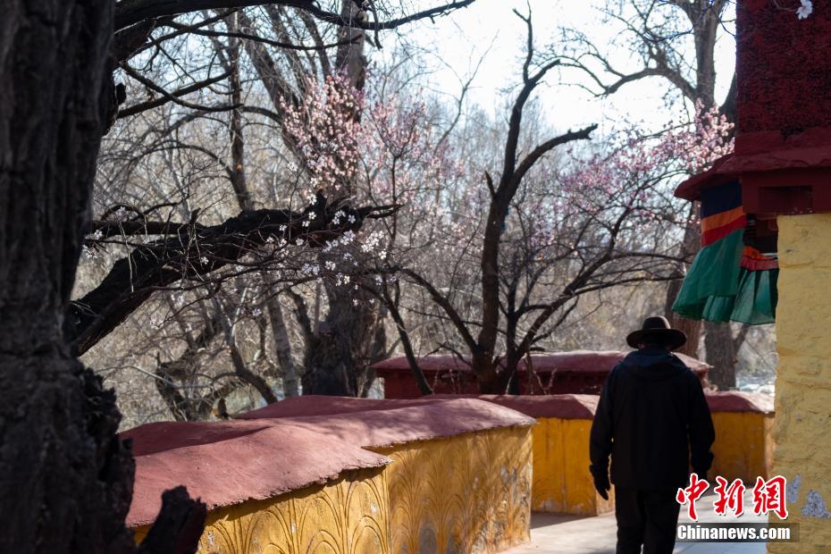 3月23日,拉薩龍王潭寺廟內的杏花、桃花等已經綻放。江飛波 攝