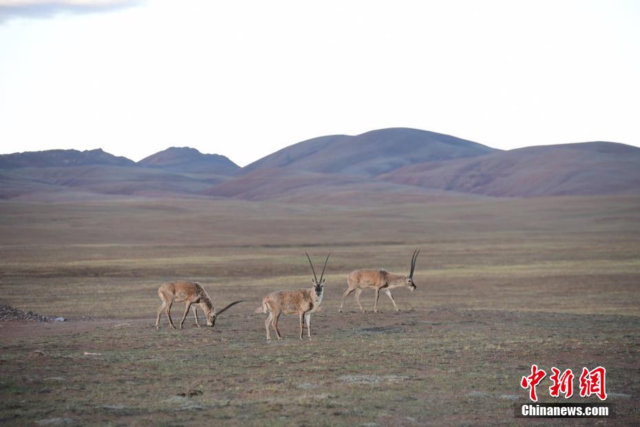 圖為西藏自治區(qū)那曲市雙湖縣境內的藏羚羊。貢嘎來松 攝