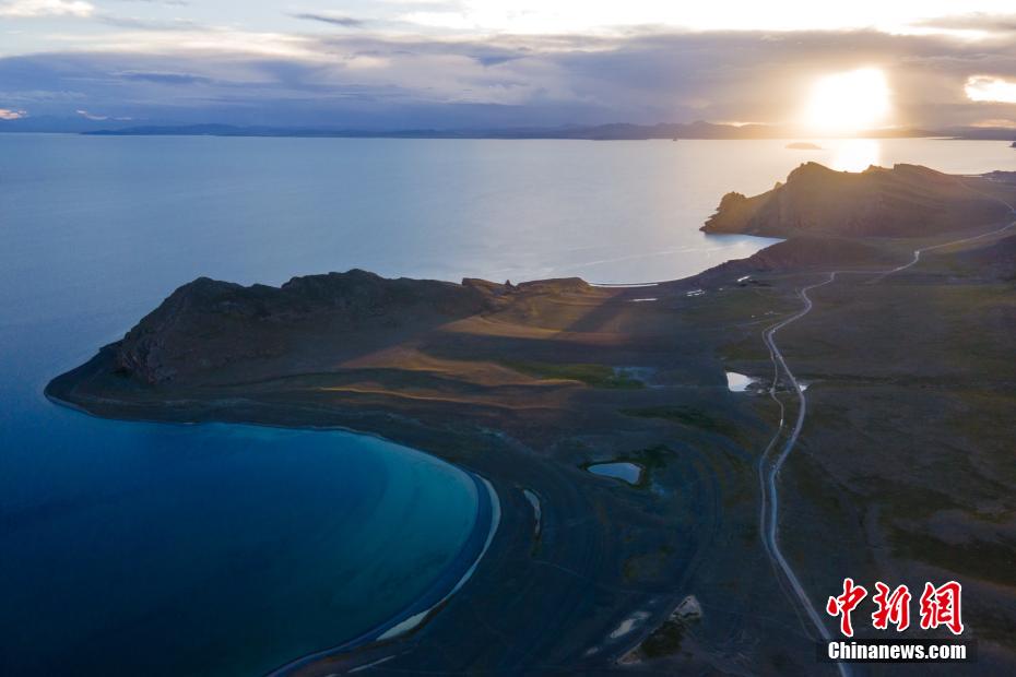 夕陽的余暉照耀在納木錯湖岸半島上。 江飛波 攝