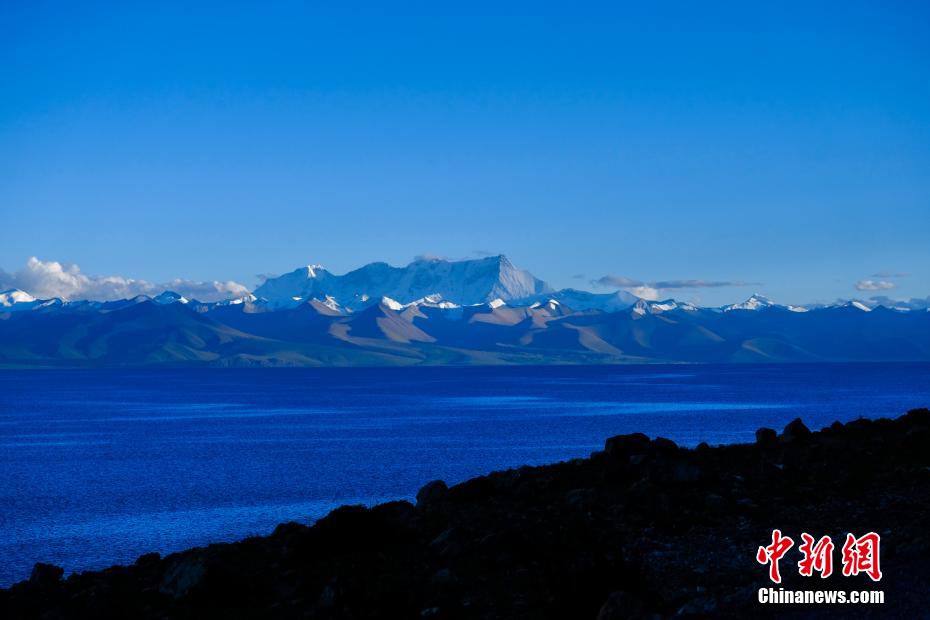 納木錯湖面一片蔚藍。 江飛波 攝