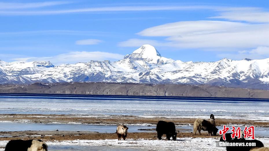 每年入冬后,西藏阿里地區(qū)普蘭縣農(nóng)牧區(qū)牦牛出現(xiàn)在岡仁波齊神山腳下及瑪旁雍錯圣湖旁,呈現(xiàn)“天邊牧場”的最美盛景。這里正是西藏瑪旁雍錯濕地國家級自然保護區(qū),視野開闊,水草豐美?,斉杂哄e的湖水主要來自岡底斯山脈的雪山融水,幽美而清澈。當(dāng)?shù)啬撩窠崭嬖V記者,每年冬季,周邊的農(nóng)牧區(qū)將把牦牛趕到這里過冬,在冬季這里的牦牛只喝“圣水”,“都是有口福的牛。” 貢桑拉姆 攝