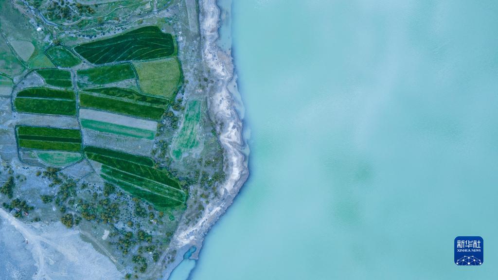 這是5月30日拍攝的然烏湖風光(無人機照片)。新華社記者 周荻瀟 攝