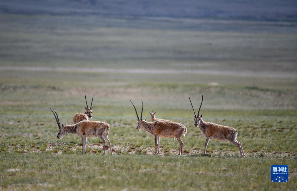 在雙湖縣境內拍攝的藏羚羊(7月17日攝)。新華社記者 晉美多吉 攝
