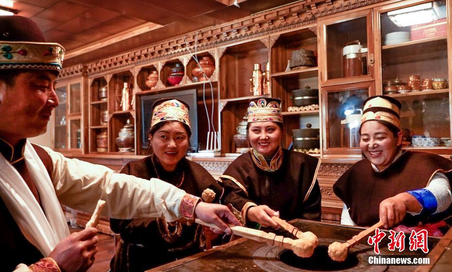 11月24日恰逢藏歷十月初一,西藏林芝迎來2023年工布新年,這是西藏最早的新年。工布新年以其悠久的歷史、鮮明的特色、豐富的內涵,于2006年被列入第一批西藏自治區非物質文化遺產保護名錄。圖為人們在火上烤節日美食“結達”。 阿仁 攝