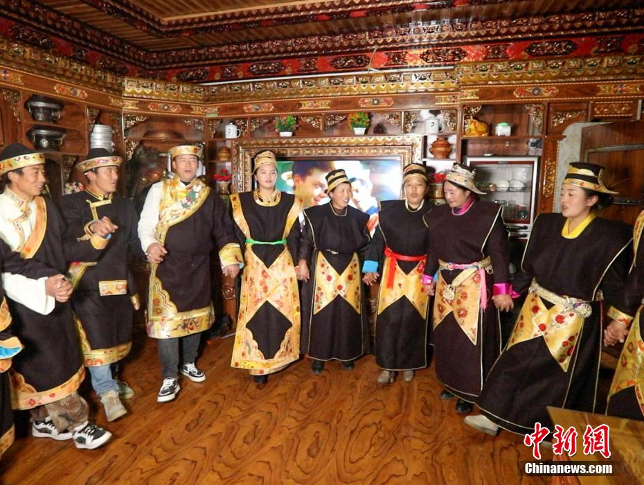 11月24日恰逢藏歷十月初一,西藏林芝迎來2023年工布新年,這是西藏最早的新年。工布新年以其悠久的歷史、鮮明的特色、豐富的內涵,于2006年被列入第一批西藏自治區非物質文化遺產保護名錄。圖為村民身著節日盛裝過年。 德吉 攝