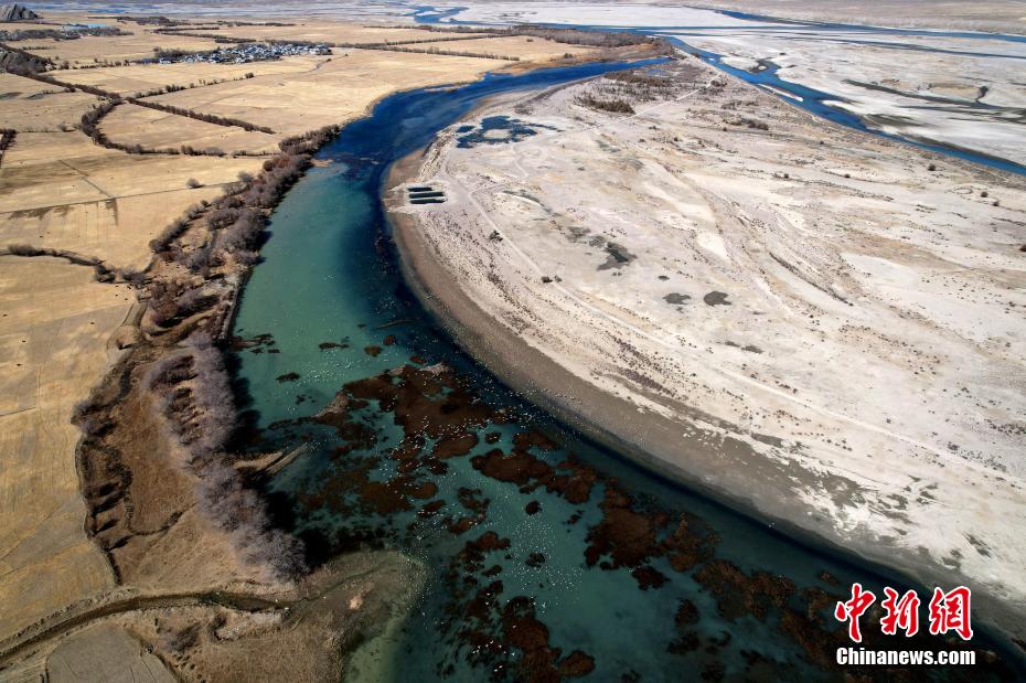 圖為西藏日喀則市桑珠孜區(qū)邊雄鄉(xiāng)是黑頸鶴的主要越冬地之一。(無人機照片)李林 攝