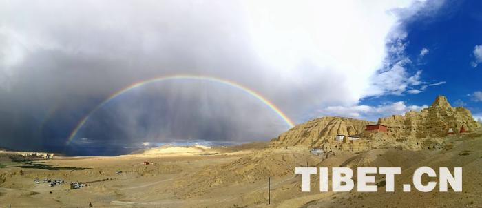 圖為古格王朝遺址與雙彩虹遙相呼應(yīng)。攝影:楊可揚