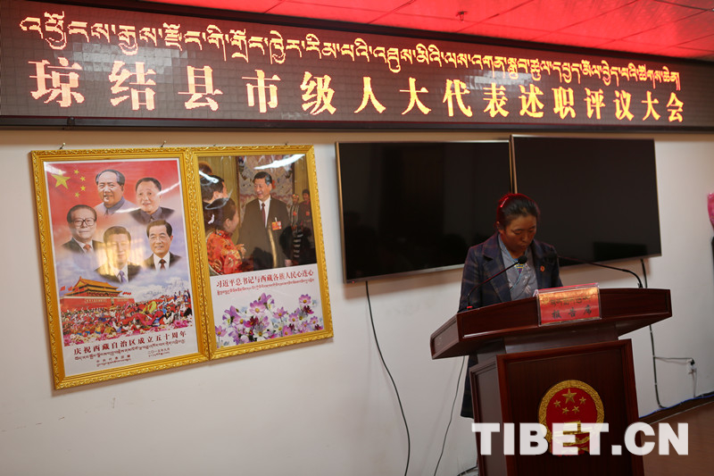 德吉卓嘎代表做述職報告。