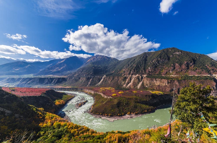 秋季的大峽谷由夏季單一的蔥蘢碧綠轉向秋季的五色斑斕。金色的松林、抬眼可見的冰川雪山,湛藍澄澈的天空,當這一切倒映在碧綠的江水中,仿佛一幅生動的油畫。