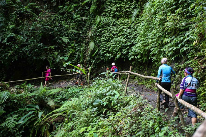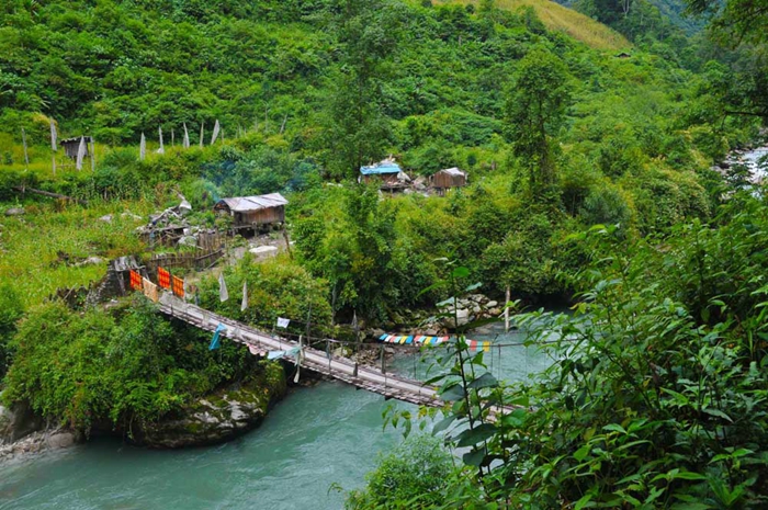 繼續前行,從大峽谷中的派鎮出發,沿途經過松林口、多雄拉山口、拉格、汗密、老虎嘴、阿尼橋、背崩等地,到達墨脫縣城。