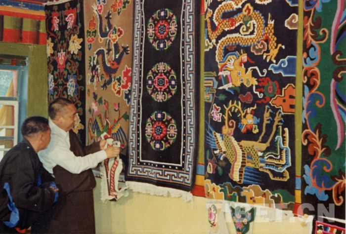 十世班禪大師視察拉薩團(tuán)結(jié)卡墊生產(chǎn)合作社,1982年。劉麗嘉攝