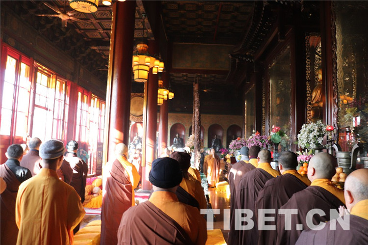 中國西藏網訊 今年適逢中國佛教協會名譽會長十世班禪大師圓寂30周年,1月28日上午9時,中國佛教協會及在京直屬寺院法師、工作人員、首都善信居士齊聚北京廣濟寺,隆重舉行紀念十世班禪大師圓寂30周年法會,深切緬懷十世班禪大師。法會禮請中國佛教協會演覺副會長、宗性副會長、祜巴等傣副會長主法,宏度副秘書長主持紀念儀式。三位法師拈香主法,帶領僧眾莊重誦經,圓滿完成法會儀軌。