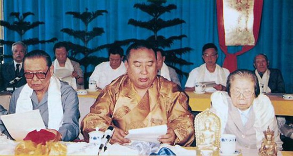 1949年,十世班禪大師在新中國成立的當天,致電毛澤東主席和朱德總司令,表示竭誠擁護中央人民政府,稱頌“今后人民之康樂可期,國家之復興有望,西藏解放,指日可待,班禪謹代表全藏人民,向鈞座致崇高無上之敬意,并矢擁護愛戴之忱?!?/p>