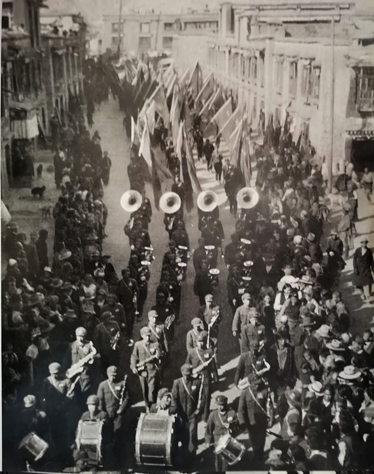 圖為1955年文工團在拉薩表演藏族舞蹈。圖片由李俊琛提供。