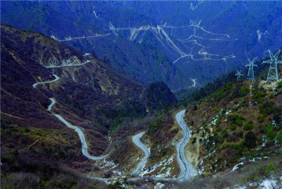 圖為國道318線未通隧道前翻越二郎山的盤山公路。圖片來源:四川新聞網