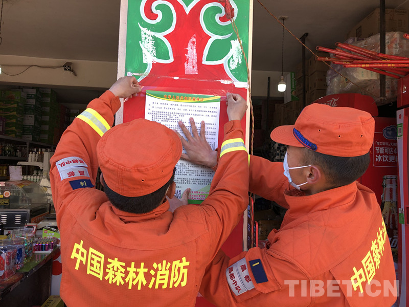 西藏森林消防總隊在西藏自治區(qū)6市17縣采取防火宣傳小分隊進社區(qū)、進林區(qū)、進企業(yè)、進村莊、進農戶的“五進”形式,以重點林區(qū)、人員密集區(qū)為重點,以宣傳強意識、設卡堵火種、檢查除隱患、遇火早撲滅為任務在重點地段、重要林區(qū)、景區(qū)、入山路口懸掛防火標語、設置火源檢查站。出動100余名指戰(zhàn)員深入重點林區(qū)、景區(qū)實施靠前駐防,通過向過往群眾、游客講解森林火災常識、體驗滅火裝備等方式,做好節(jié)日期間森林防火工作。