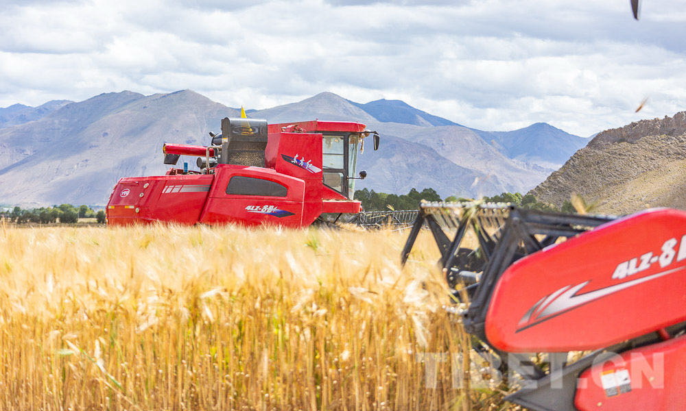 圖為日喀則市江孜縣紫金鄉努堆村機械化秋收(資料圖)