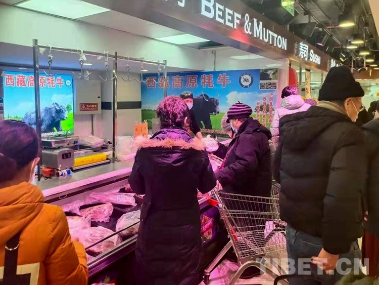 中國西藏網(wǎng)訊 近日,北京廣聯(lián)連鎖超市冷鮮肉柜臺(tái)前,購買牛肉的市民正在認(rèn)真選購來自西藏昌都市芒康縣的高原牦牛肉。