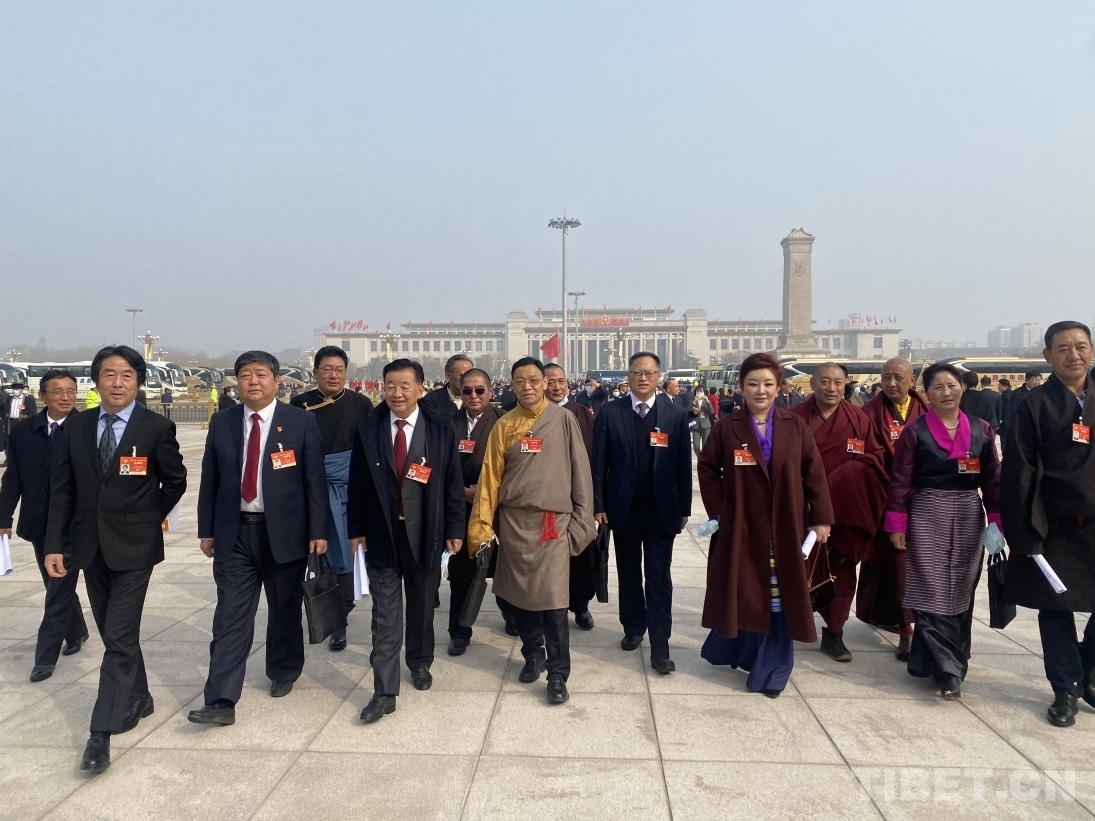 圖為扎西委員和西藏自治區代表委員們一同步入會場