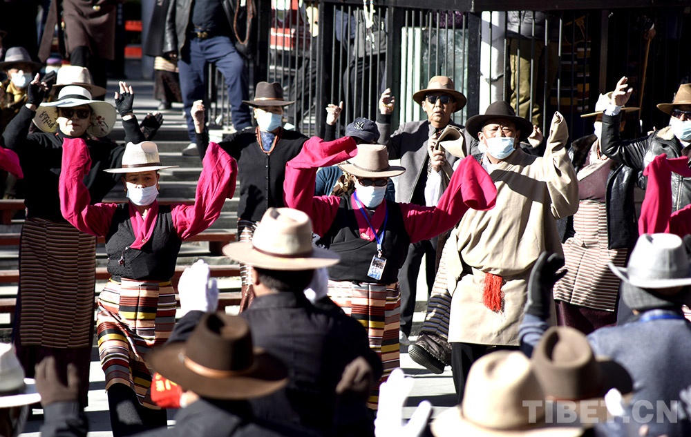 當熱情的鍋莊舞曲傳遞到健身場地時,老大爺德欽云丹正講解完一個動作要領,數著節拍帶領大家運動起來。
