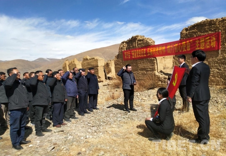 圖為隆子縣組織黨員干部在列麥鄉“革命壩”參觀學習并重溫入黨誓詞 圖片由隆子縣提供