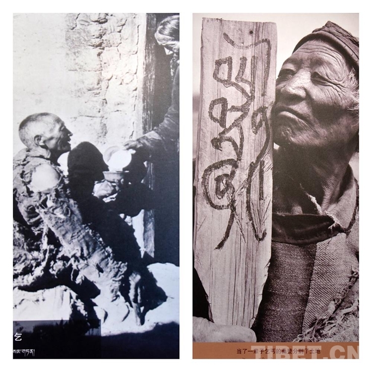 中國西藏網訊 一張圖片是衣服破爛的桑登手拿木碗正在求乞,一張圖片是桑登分到了土地,短短幾年,曾是乞丐的桑登生活發生了巨大的變化,這一切是因為1959年的西藏民主改革。
