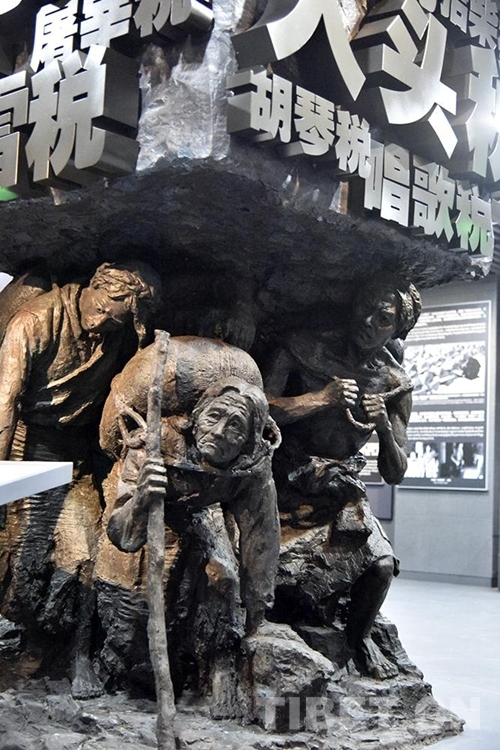 圖為西藏百萬農奴解放紀念館內反映舊西藏多如牛毛的苛捐雜稅的雕塑 攝影:王媛媛
