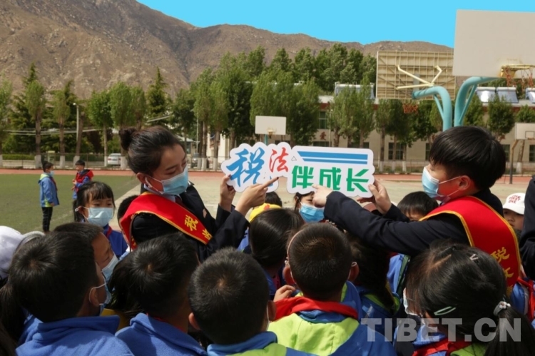 “稅官們用淺顯易懂的藏漢雙語向同學(xué)們講解稅收的起源等稅收知識,不僅豐富了孩子們的課外知識,還能幫助他們從小增強(qiáng)納稅意識。剛才還有學(xué)生跑來告訴我,將來也要像叔叔們一樣,為祖國收稅!”年級主任巴桑笑著告訴前來為孩子上課的稅務(wù)干部們。