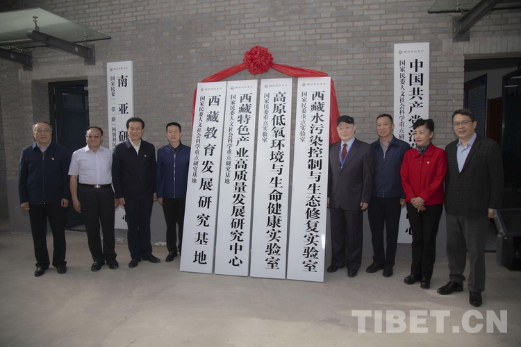 研討會開幕式之前,與會領導為西藏教育發展研究基地、西藏特色產業高質量發展研究中心、高原低氧環境與生命健康實驗室、西藏水污染控制與生態修復實驗室同時掛牌揭幕。大會主旨發言之后,西藏民族大學黨委常委、副校長史本林、西藏駐格爾木辦事處(藏青工業園區)黨委書記邱川共同簽訂雙方合作框架協議,旨在加強科研交流合作,共同為西藏社會高質量發展做出貢獻。