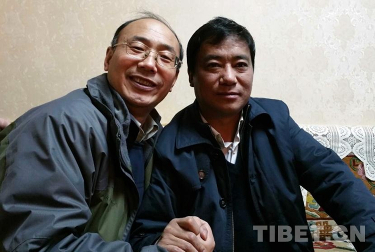 這是唐召明(左)與時任那曲地區發改委主任楊東升(右)在楊東升家中相聚時,合影留念(楊東升家人2014年12月27日攝)