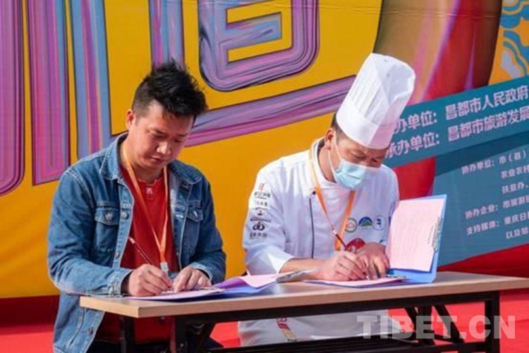 此外,活動現(xiàn)場還進(jìn)行了非物質(zhì)文化遺產(chǎn)體驗活動和產(chǎn)品展銷活動,共有32個企業(yè)參加。據(jù)悉,截止活動結(jié)束,現(xiàn)場累計交易額5萬余元。重慶文旅館同參賽人員進(jìn)行現(xiàn)場簽約,這對昌都餐飲業(yè)的推廣和發(fā)展具有重要的意義。(中國西藏網(wǎng) 記者/次旦拉姆 圖片由卓卓康巴美食大賽組委會提供)