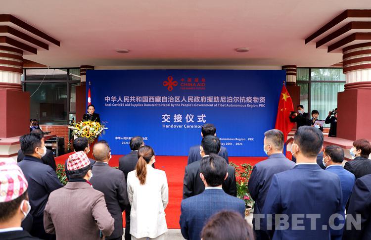 圖為5月20日舉行的中華人民共和國西藏自治區人民政府向尼泊爾政府緊急援助抗擊新冠肺炎疫情物資交接儀式 攝影:賈華加