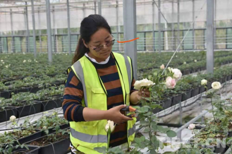 圖為西藏江平農業有限責任公司玫瑰花棚。這里的鮮花經過采摘、打包、裝車、運輸,將運往山南市和拉薩市的鮮花店銷售。攝影:拉姆
