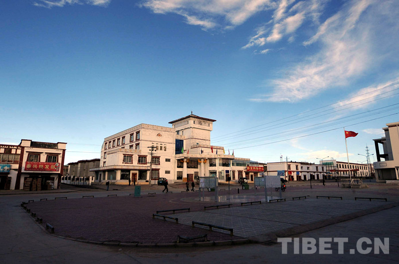 這是中國海油為尼瑪縣城援建的尼瑪賓館和新廣場(唐召明2009年8月8日攝)