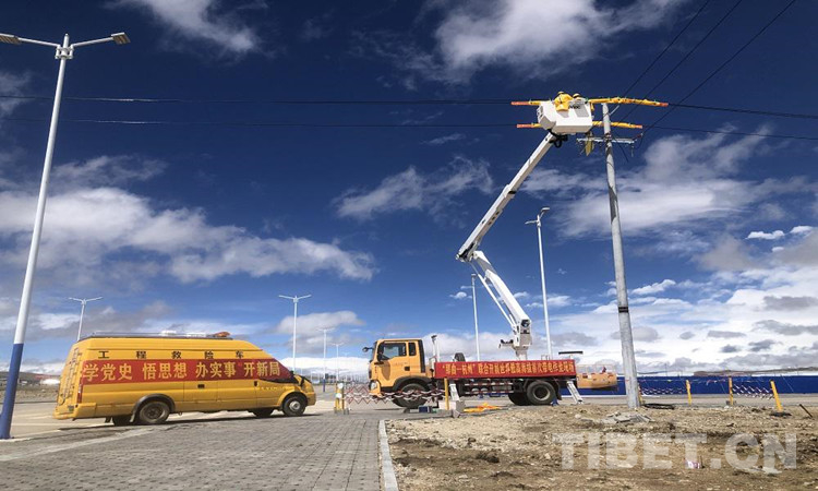 中國西藏網訊 日前,在西藏自治區那曲市,國網杭州供電公司配網不停電作業幫扶團隊與國網那曲供電公司,在近一個小時的時間順利完成了現場復勘、工作交底、線路驗電、絕緣遮蔽、搭接引流線等步驟,那曲市南部新區完成帶電接引流線工作,這是那曲市首次開展配網10千伏帶電作業,海拔4490米的位置也是迄今為止世界海拔最高的帶電作業。