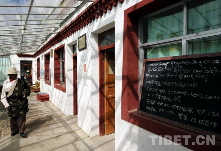 走進村委會的玻璃式采暖房,首先映入眼簾的是申扎縣委頒發的“安全文明村”金色牌匾,以及藏漢文兩種文字的學習墻報。