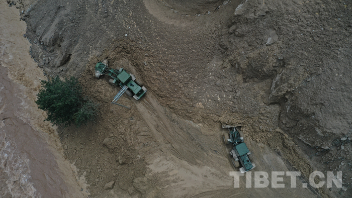 圖為該支隊救援官兵正在對川藏線怒江溝泥石流災害進行搶通