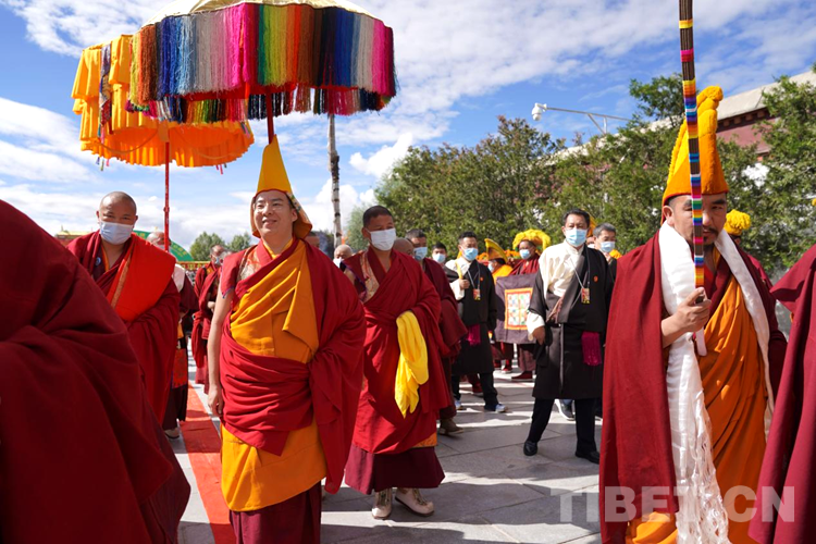 中國西藏網訊 8月的西藏自治區日喀則市,陽光普照,煦日和風。8月8日上午,全國政協常委、中國佛教協會副會長、中國佛教協會西藏分會會長班禪額爾德尼?確吉杰布回抵日喀則市扎什倫布寺。