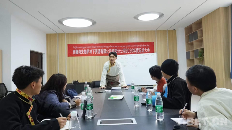 圖為西藏崗朱帕薩林下資源有限公司咸陽分公司2020年度總結(jié)大會(huì)留念照