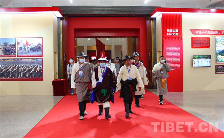 圖為西藏自治區基層干部步入“全國興邊富民成就展”展廳 攝影:王茜
