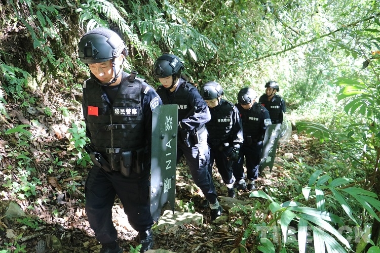 走在隊伍最前面的是經驗豐富的老民警李永杰,他手里拿著一把砍刀,一邊清理小路兩側蔓延出來的枝椏,一邊時刻注意著兩位女民警情況。隨著海拔升高,走進樹木茂盛的叢林,陽光只能從郁郁蔥蔥的樹葉間撒下兩三縷光芒,兩名女民警瞪大眼睛好奇地觀察著周圍,對接下來的行程充滿期待。