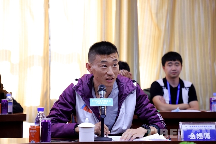 圖為滑雪登山國家青年隊教練金煜博作交流發言