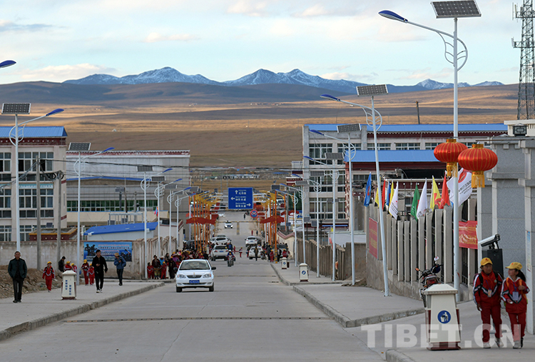 如今,登高遠望聶榮縣城,一棟棟高樓、一排排紅白相間的藏式新居和掛著紅色吉祥結及紅燈籠的太陽能路燈,與一條條新命名為查曲路、教育路、濱河路、盤羊路、扎布路、扎空路等街道,共同繪就了一幅美麗的城鎮新畫卷。
