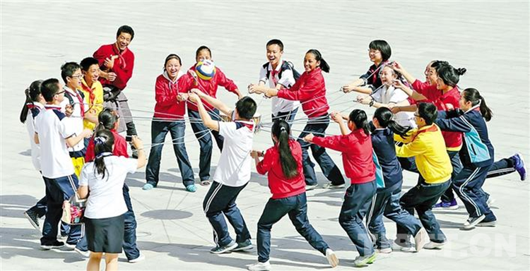 圖為西安市浐灞第一中學陜、藏學子們共同托起“同心鼓”。 圖片由西安市浐灞第一中學提供