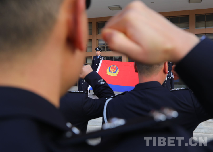 圖為林芝邊境管理支隊機關開展向警旗宣誓活動 攝影:姜凱峰