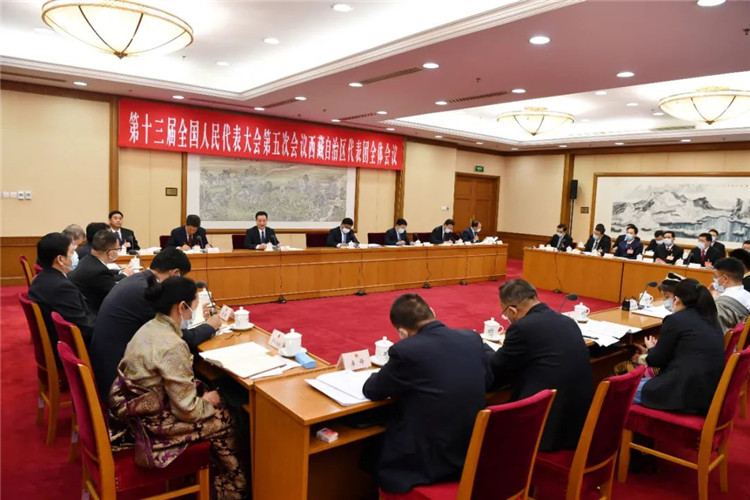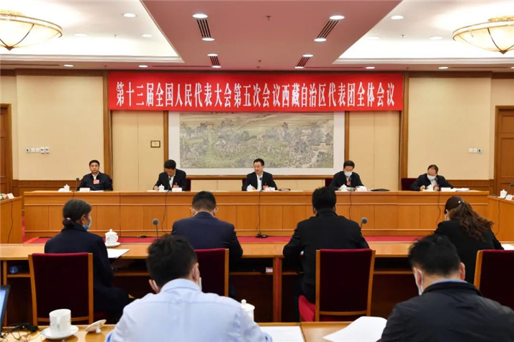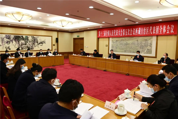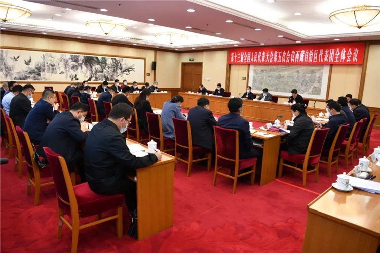 圖為3月8日下午,西藏自治區(qū)代表團(tuán)在駐地舉行全體會議,審議全國人大常委會工作報(bào)告。旦增西旦 攝